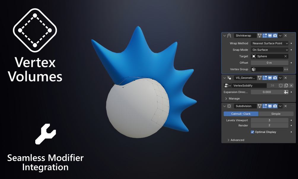 Vertex Volumes integrate seamlessly with Blender's modifier stack system, thus allowing for more flexibility and creative possibilities.